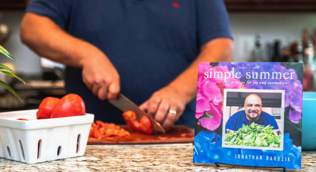 Each July, Culinary Arts Month promotes awareness of professional cooks and chefs, as well as their contributions to new culinary trends and the world of fine dining. Now a celebrated chef, TV host, and storyteller, Jonathan Bardzik left a comfortable corporate position a decade ago to embark upon his culinary calling – to share food, stories, and joy with audiences everywhere. This month, Jonathan celebrates his career on the tenth anniversary of his first live cooking demonstration at Washington, DC’s historic Eastern Market with the release of his new book, Simple Summer: a recipe for joy and connection, now available for pre-order here.
