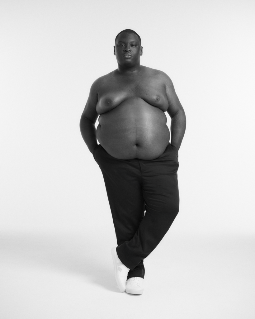 Many designers create based on their own taste and assume everyone else will respond to it. But when you’re designing for a different gender, you need to approach it far more objectively. For me, that means constantly talking to men, asking questions, observing how they move, how they wear clothes, what frustrates them and what they genuinely enjoy wearing. That distance keeps me focused on what works for them, not on what I personally prefer. What those conversations revealed is that the problem goes far beyond fit. There’s a strong emotional and cultural dimension to it. Many bigger men grow up feeling like they should hide their body, not take up too much space, not stand out. But when clothes actually fit well, something shifts, and you see it immediately. Shoulders go back, posture changes, confidence appears. That moment is what I design for.