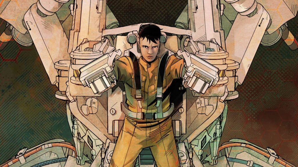 Kit herself doesn’t actually take command of a Titan in the first issue, in fact – an opening battle where a drunken Dej ignores orders and ends up laying waste to a swathe of New Hyperion is more to establish his own problems and how his stress-induced alcoholism is spiralling out of control, creating the chaos that requires Kit to step up. The rest of the comic is instead focused on establishing Kit’s independence and stubbornness, for better or worse.