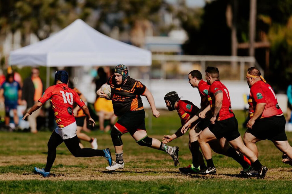 Jack: I started playing rugby when I joined The Los Angeles Rebellion LGBTQ+ Inclusive Rugby Club in 2018 after a breakup. I needed a “slap in the face” something to get me out of the house and out of my comfort zone. I found the rebellion and with family and some of my closest friends. Key milestones include scoring my first try in Ottawa, Canada during the Bingham Cup and playing a rugby pride match at the olympic colosseum in Los Angeles with my Parents in the stands.