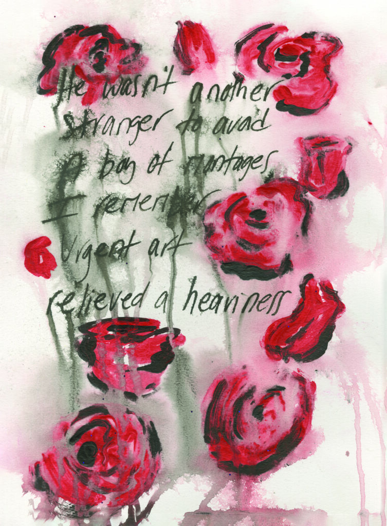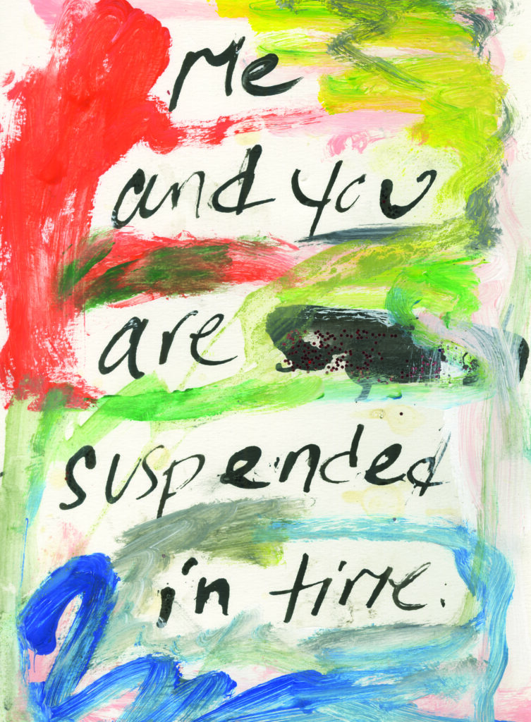 There was no preconceived notion of Wasteland, that title, made famous by T.S. Eliot did not yet exist for our project. We began with watercolor paper, ink, and a bamboo pen. I rifled through old journal entries dating back to 2021 and I found passages that still resonated with me. When I transcribed them onto the watercolor paper, I channeled the emotions I felt at the time those words were written. When I handed off the pages to Scooter, the aim was to discover a response. Nothing planned, nothing predetermined. And when he returned the pages, surrounded by his art, it didn’t change the meaning of my words, instead, it added a light and an energy to them, another pulse. Sometimes, I would give a response back, adding paint and pastels to his creation. And sometimes, I would write more words, over his art. This was the kind of collaboration I was looking for.