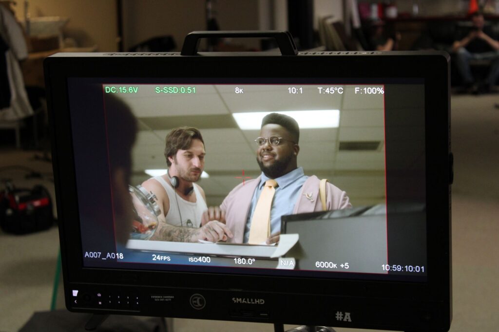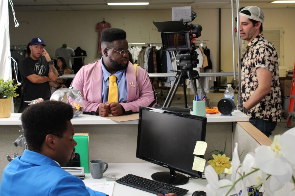 MTHB: Genuinely so baffled by how lovely and talented this cast is! Carl Clemons-Hopkins (Hacks), Devere Rogers (Honk for Jesus Save Your Soul, Abbott Elementary), Michael Benjamin (comedian, A Spy Movie), Ari Friedman (Star Trek: Discovery), a little cameo from Mac Kahey (“MacDoesIt”), and more. I think most of the cast was in the director and I’s orbit in some small capacity. Carl and I had briefly interacted before through being in some of the same LA queer circles. When I was in the early stages of just trying to get this project off the ground, I sent the script to Carl and he graciously came on as an Executive Producer and was actually the first actor cast for the film. I had been such a fan of his, and to have him on this project I think made us all want to work even harder to make this the best film we could.