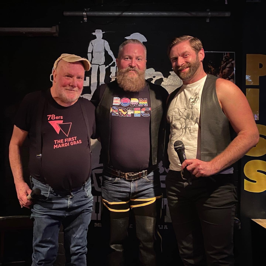 B.C.: At my age have had to settle down to a retired life. I finally stopped attending piss parties at Trade about 6years ago. No-one wants to see someone my age doing that. My mobility is not great. To steal a joke from Barry Lowe (novelist and journalist) “ If I go down on my knees these days it takes a forklift and two paramedics to get me up.” I am enjoying doing the queer history tours with The Sisters of Perpetual Indulgence and have more lined up for next year. Socialising at Bears is my main activity now. I may write a memoir. I have some great stories to tell and they would be pretty explicit and frank. I do miss sex. I would go so far as to say I am going through a grieving process from losing it.
