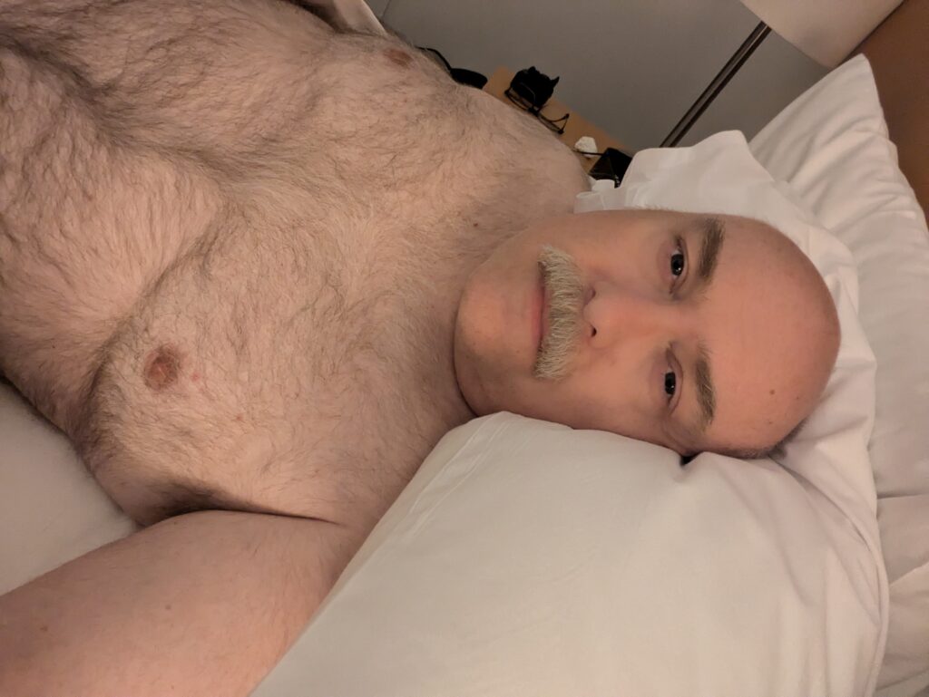 I grew my beard back just recently. My partner seems to love it, keeps telling me I look like a proper writer (despite having earned my living doing that for the entire time I’ve known him). It seems to turn a lot of heads. Everyone has a moustache now, which is part of why I let all the white hair grow back. I don’t entirely love the extra grooming. Beard dandruff is a lot. Russell Crowe, of all people, gave me some tips on maintenance and tidying. I haven’t had hair since the nineties, so it’s more than I’m used to.