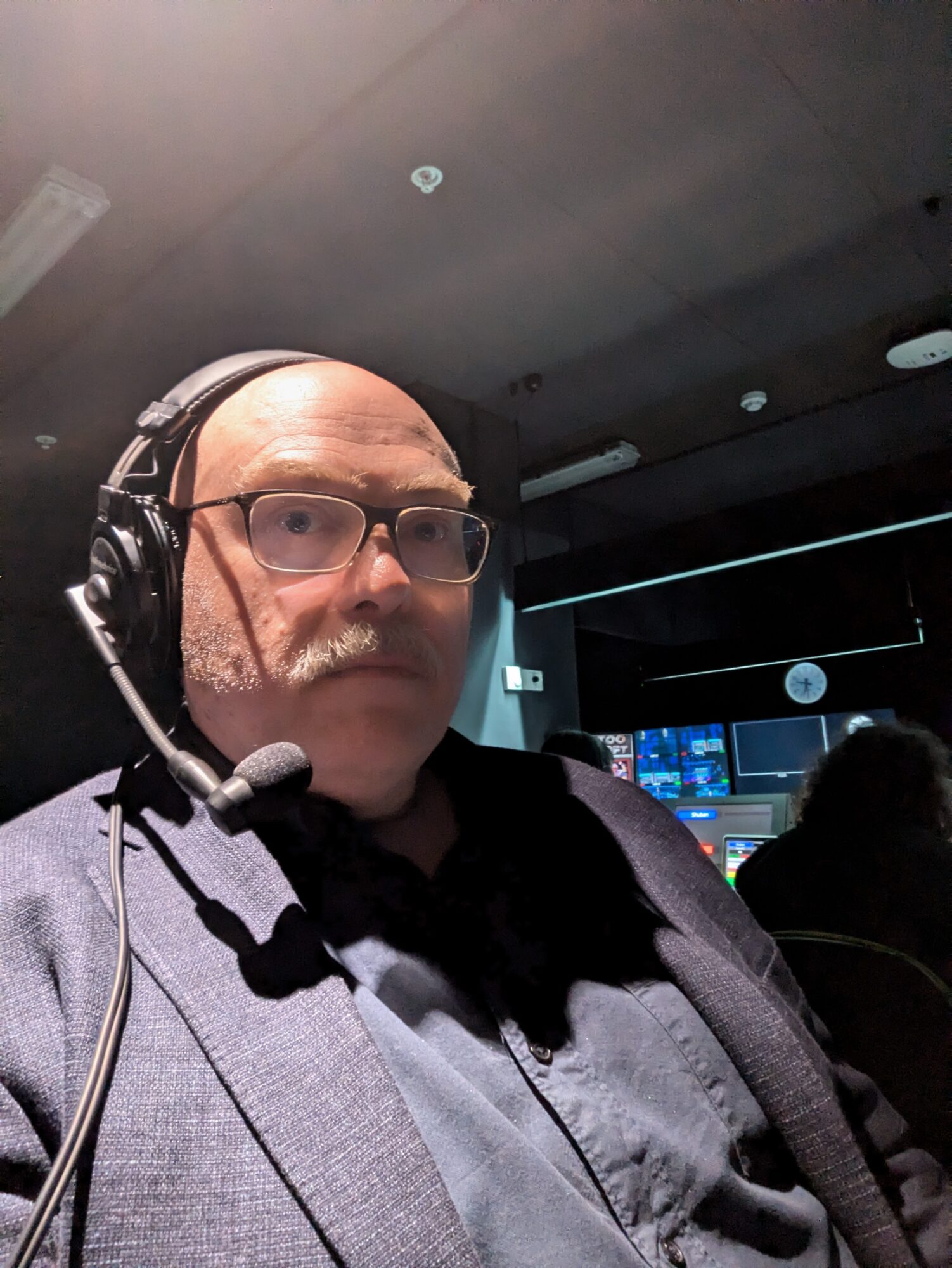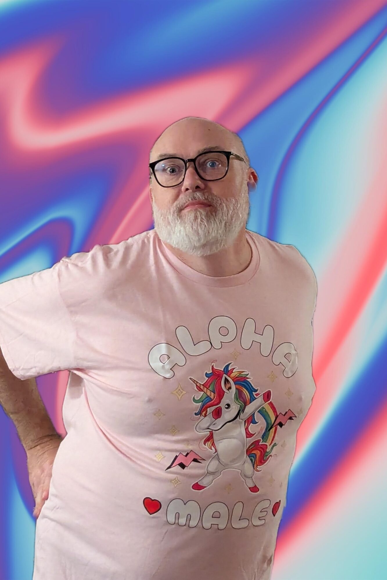 A.R.: I was a baldy face for a few years, and in 2023 I busted my knee while on holiday, and ended up spending all of World Pride in bed with an ironically straight leg. I could hear the festivities and nights and nights of partying outside my apartment window — I live in Waterloo, which is so gay, it’s an ABBA song. I was in hospital for about a week or more after surgery, so when it came time to shave, I decided to go back to the moustache I’d had from about 2012. I had a MASSIVE beard when I was appearing on Whovians and writing for Hard Quiz from about 2017 and then after completing a half-marathon in 2019 decided to get rid of all my facial hair. I’d lost 40kg, and more often than not, I’d tried to use facial hair to create some kind of jawline on my enormous balloon head.
